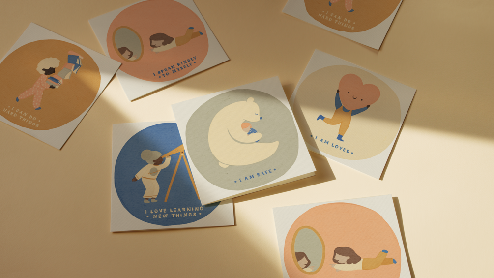A set of 10 affirmation cards to share with your little ones on the daily. Instill a positive inner voice since childhood!